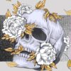 “Blooms and Bones” is a captivating artwork featuring a stark white skull set against a serene grey background. Delicate white flowers grace the skull, contrasting with the yellow leaves that surround it, creating a juxtaposition of life and death. The interplay of light and shadow enhances the depth of the composition, inviting viewers to contemplate the cycle of existence and the beauty found within mortality. This evocative piece offers a poignant reflection on the ephemeral nature of life and the enduring presence of nature’s vitality.