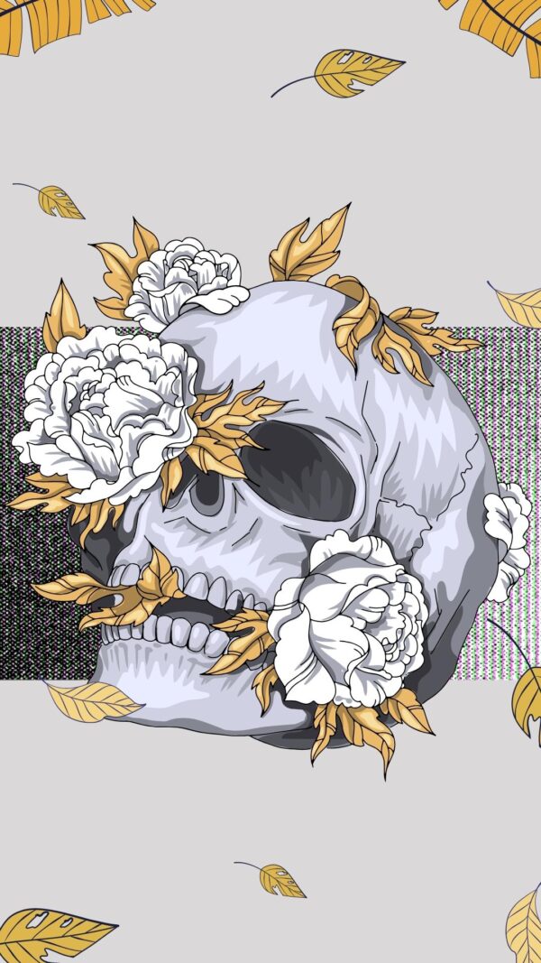 “Blooms and Bones” is a captivating artwork featuring a stark white skull set against a serene grey background. Delicate white flowers grace the skull, contrasting with the yellow leaves that surround it, creating a juxtaposition of life and death. The interplay of light and shadow enhances the depth of the composition, inviting viewers to contemplate the cycle of existence and the beauty found within mortality. This evocative piece offers a poignant reflection on the ephemeral nature of life and the enduring presence of nature’s vitality.